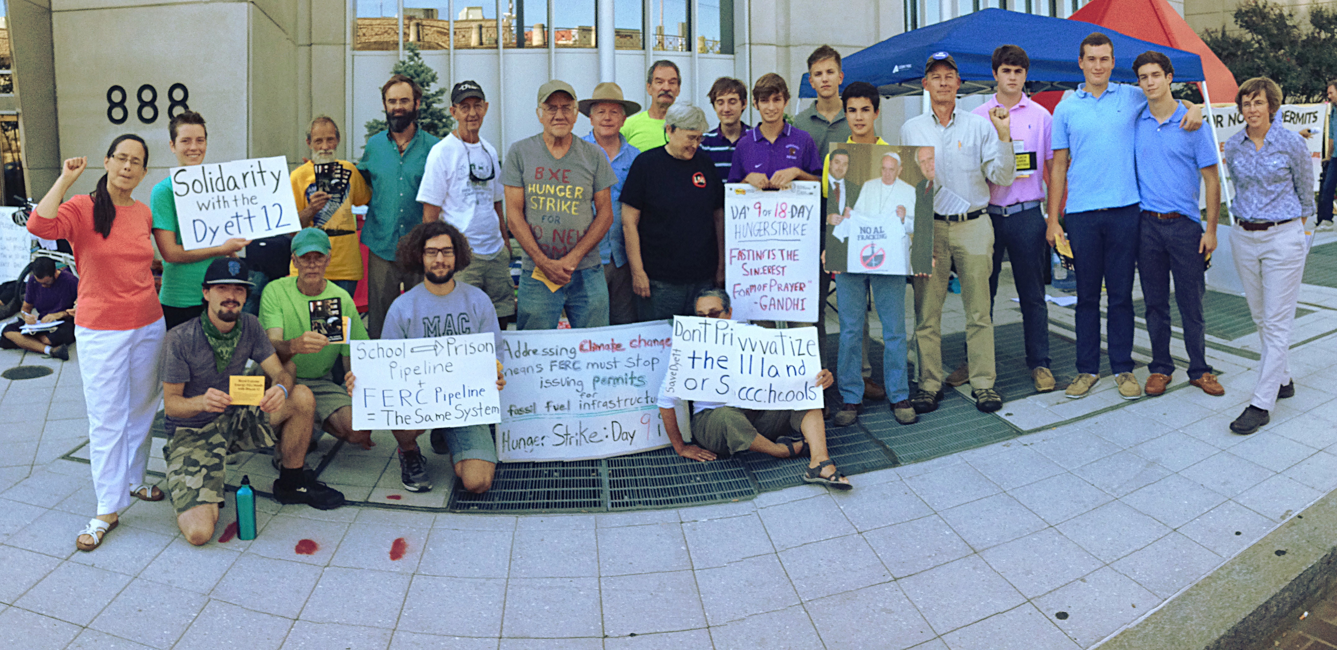 The fast will end this coming Friday, September 25th, at 12 noon in front of FERC, the day after Pope Francis speaks before Congress. We will end it by breaking and sharing bread together—a very small piece for each of us—and with the many hundreds or more people we hope will join us. We are inviting people who do so who can to bring a healthy loaf of bread to share so that, together, we will break bread together there on First St. NE, affirming life and community and our determination to keep at it until we have won.